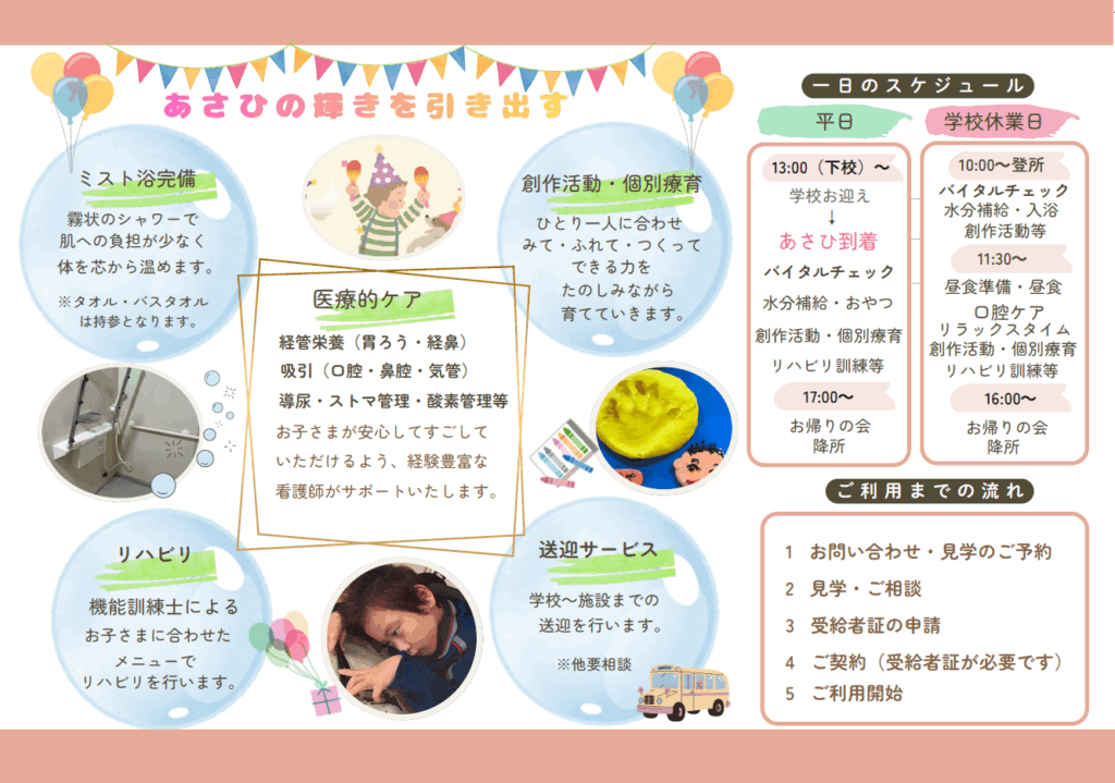 【対象】受給者証が必要です ※小学校から高校生 主に重心児、医療的ケア児のお子様